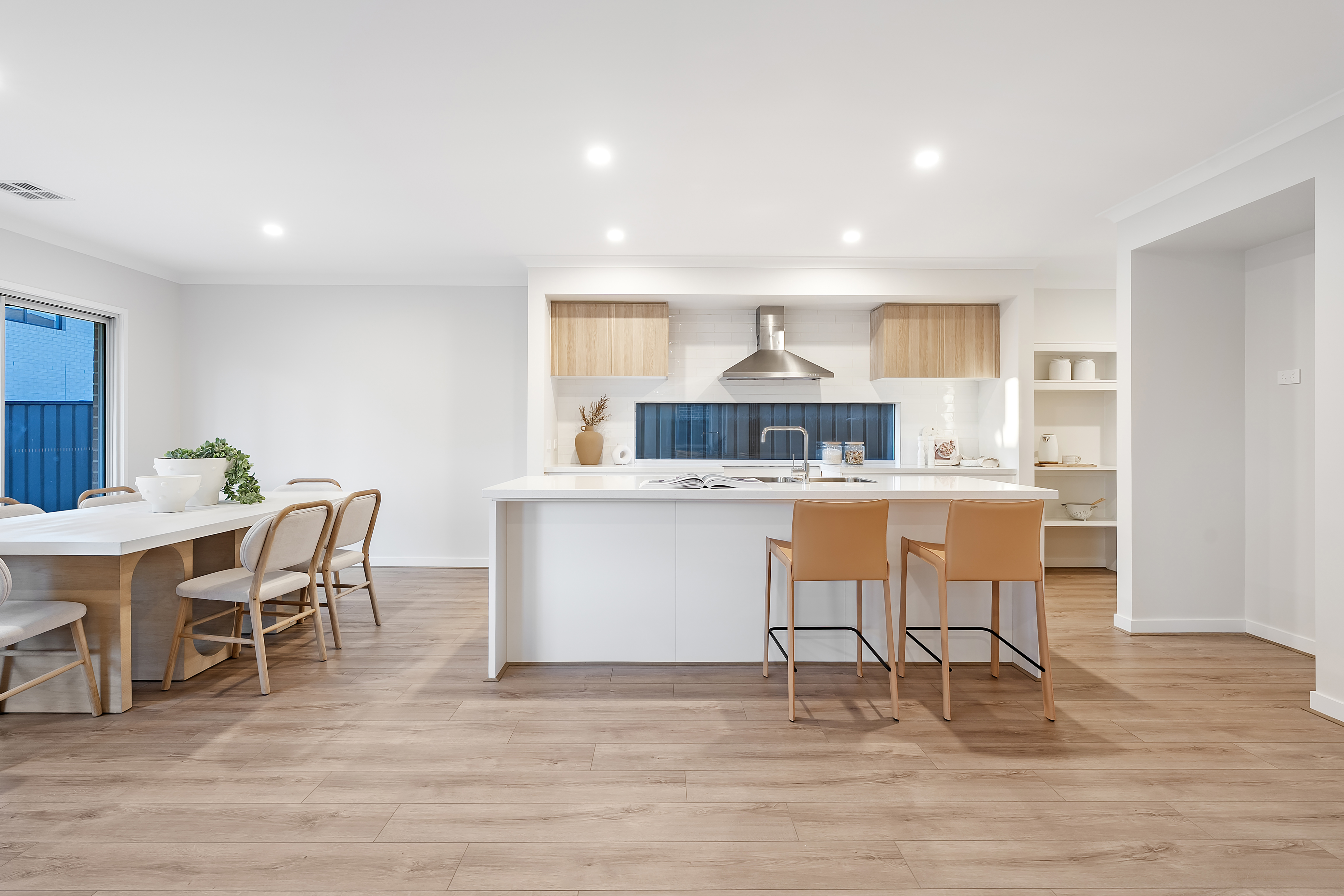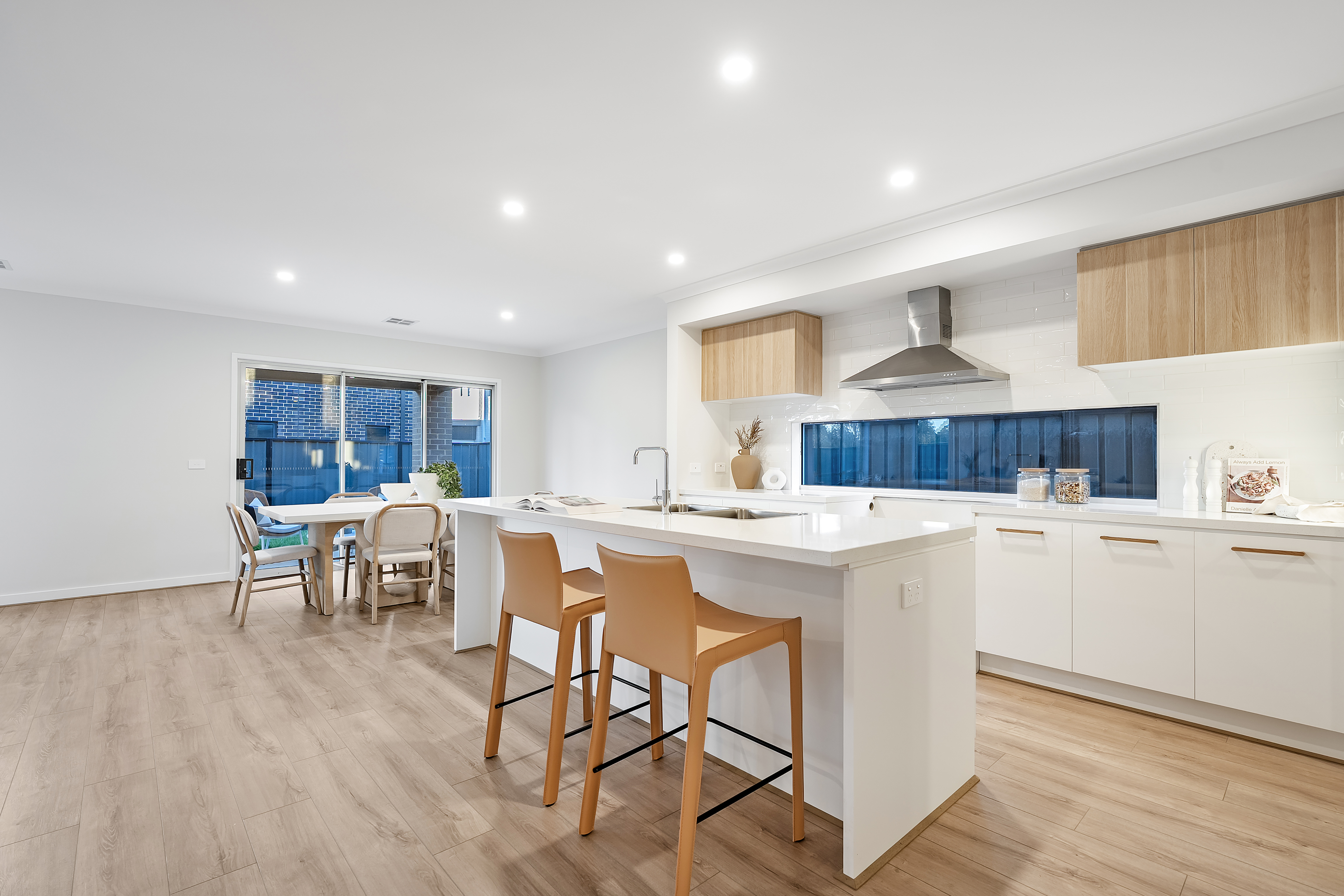 The gourmet kitchen is a chef's dream, featuring stone bench-tops, high-tech appliances, a spacious island bench, and an adjacent butler's pantry for added convenience. Whether you're preparing a family meal or hosting guests, this kitchen will impress. The kitchen overlooks the light-filled dining and living areas, creating an inviting, open space for gatherings. Not far from the kitchen there is a reasonable size laundry that has access to the side of the backyard.