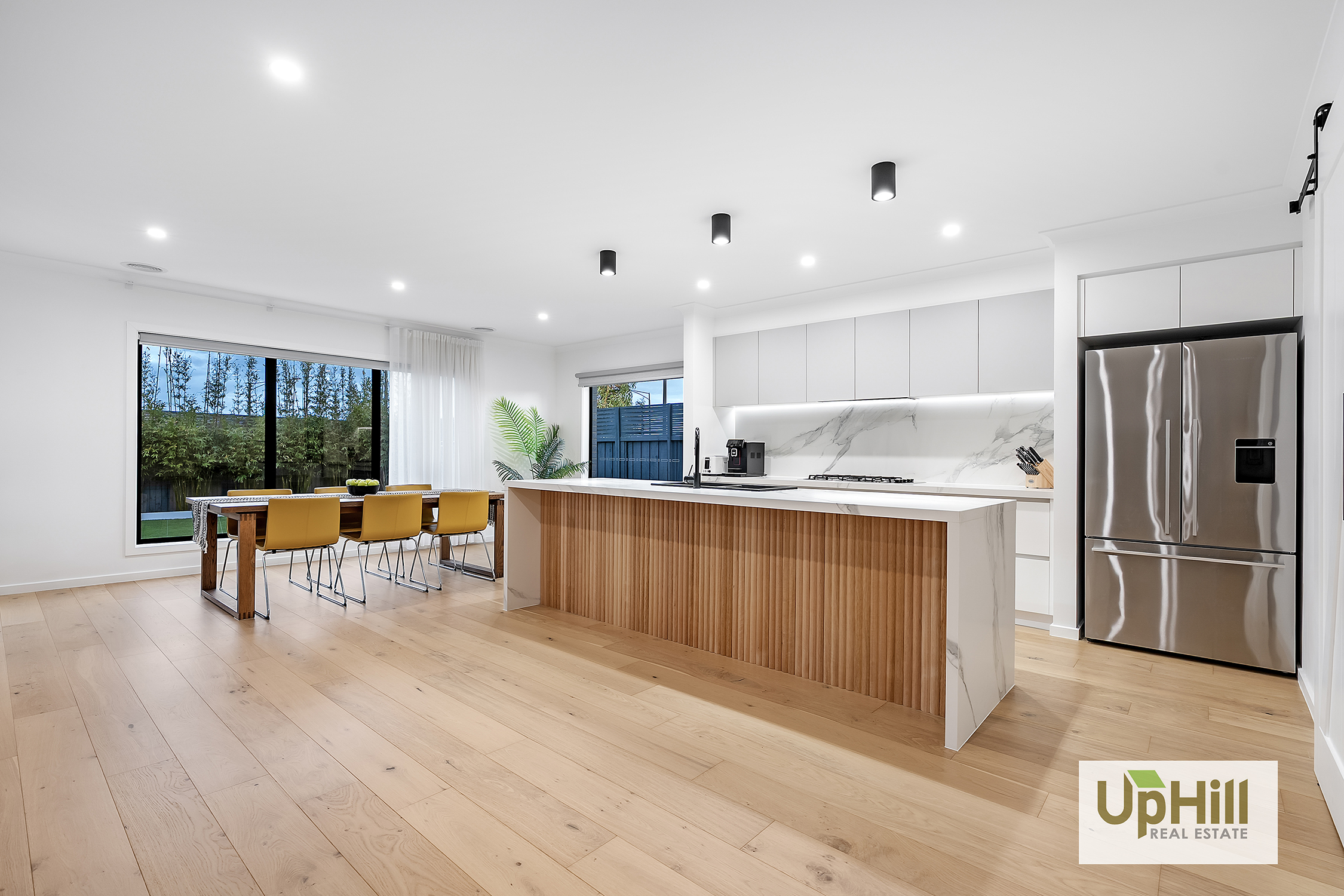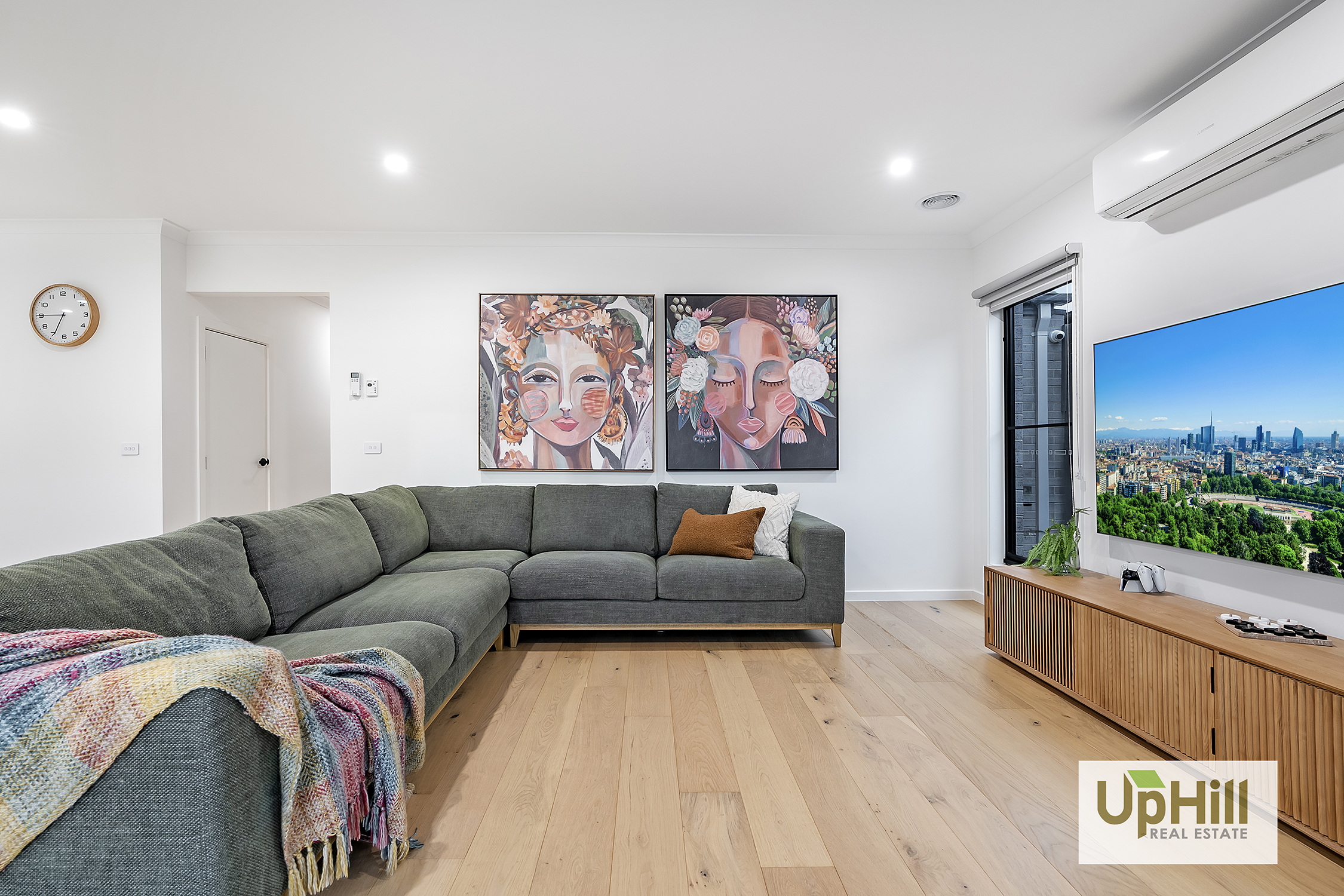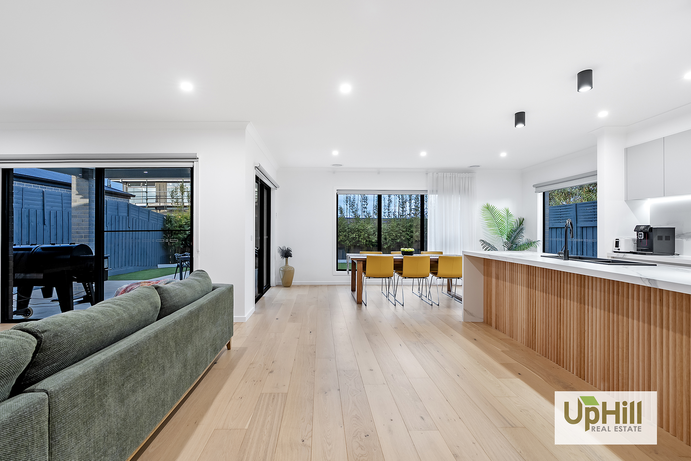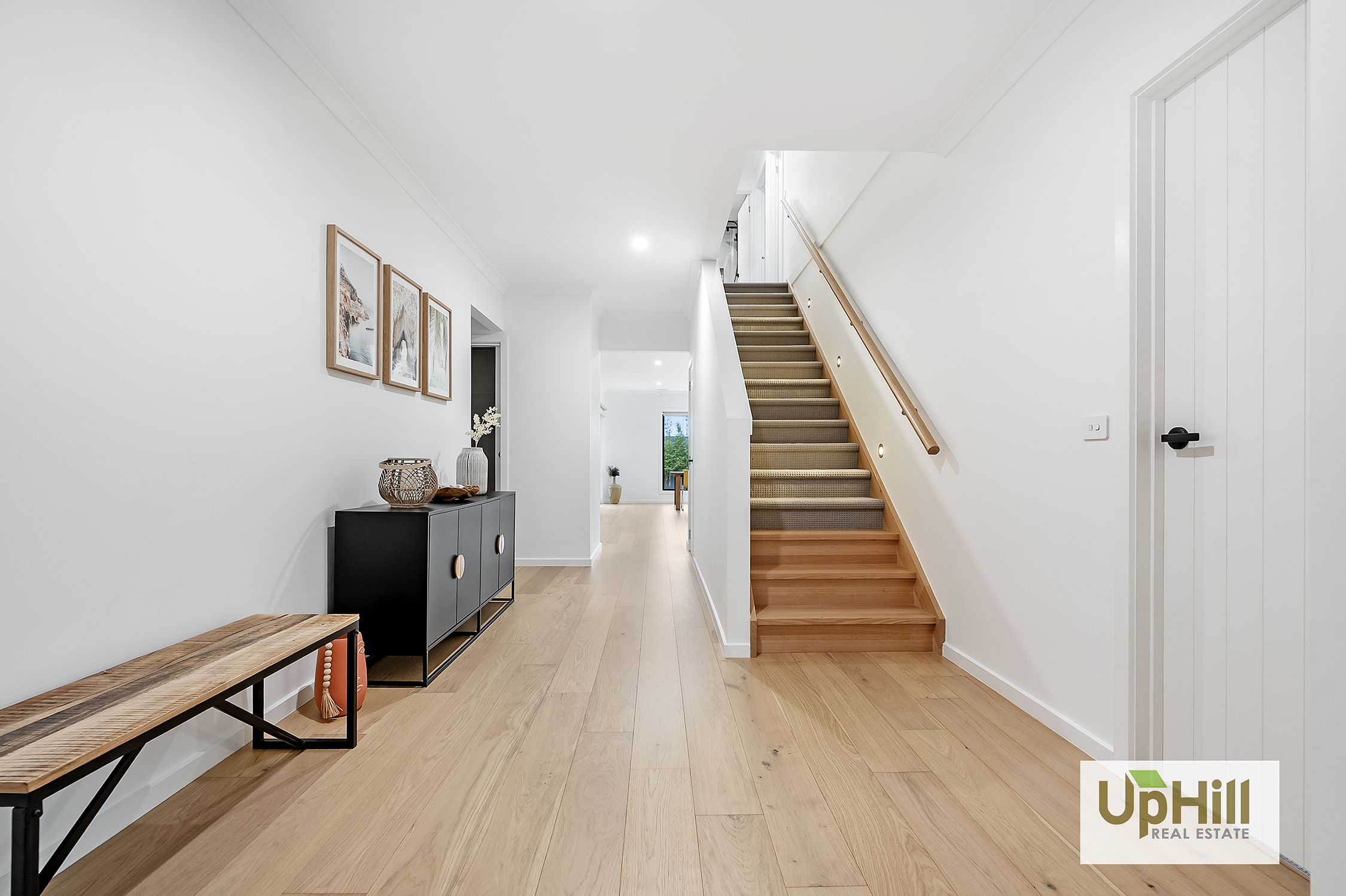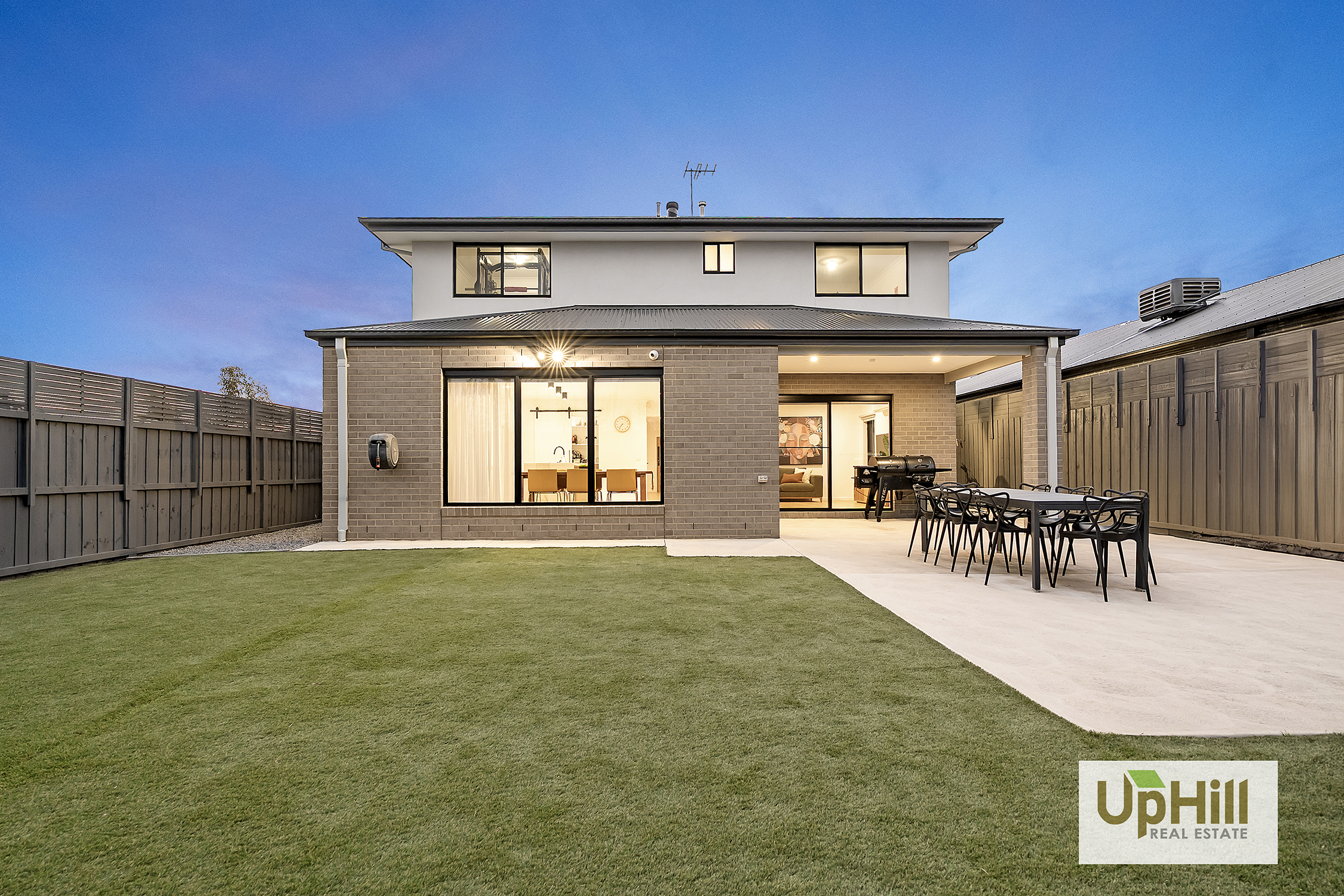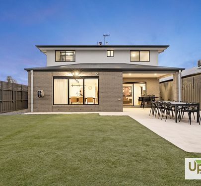 This elegant double-storey home in Officer South features 6 bedrooms, 2 bathrooms, 2 car spaces, and 3 versatile living areas, designed for modern family living. With premium finishes, a designer kitchen with walk-in pantry, and fully landscaped front and rear yards, the home perfectly combines style, comfort, and functionality in a highly sought-after location.