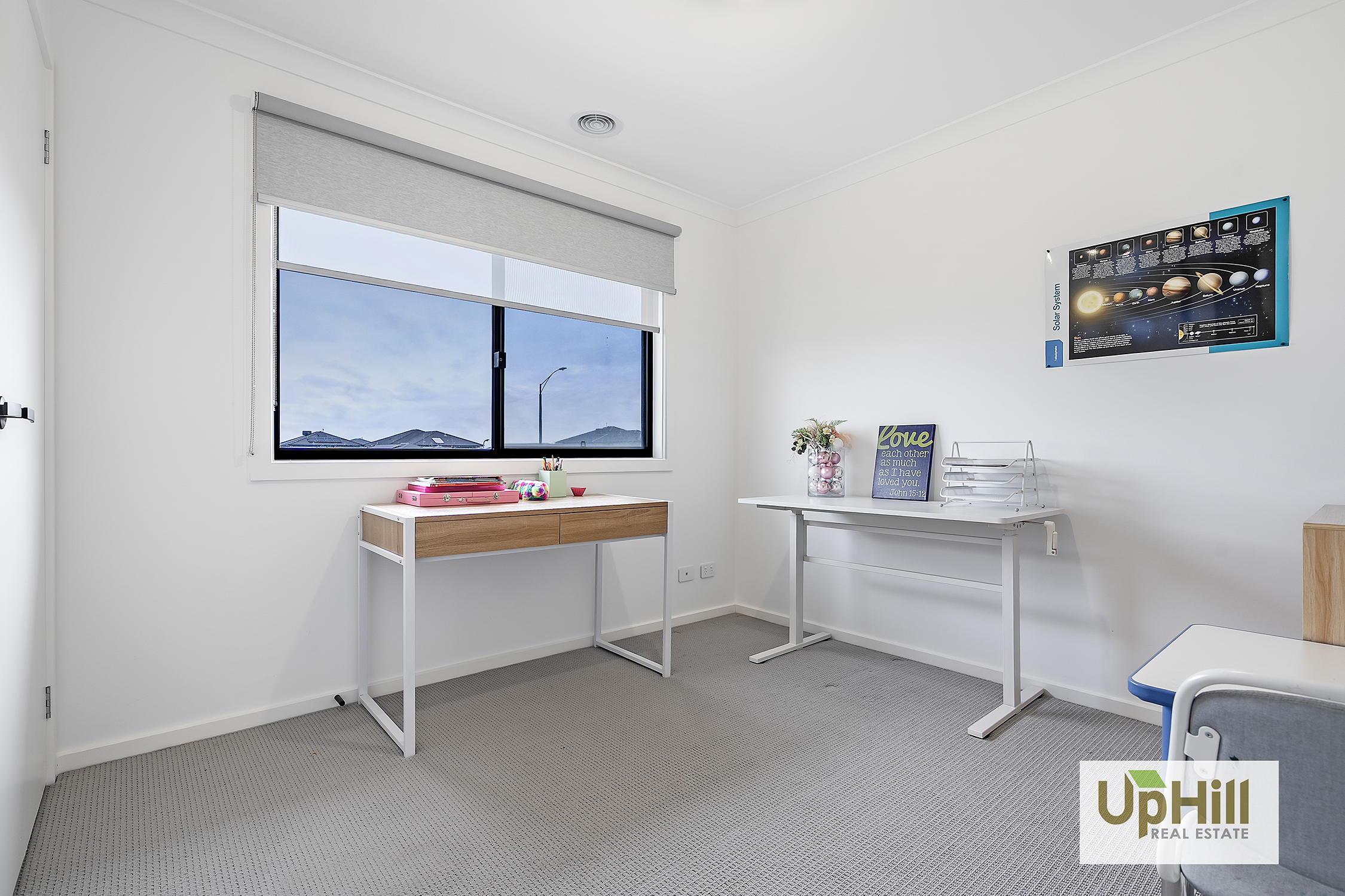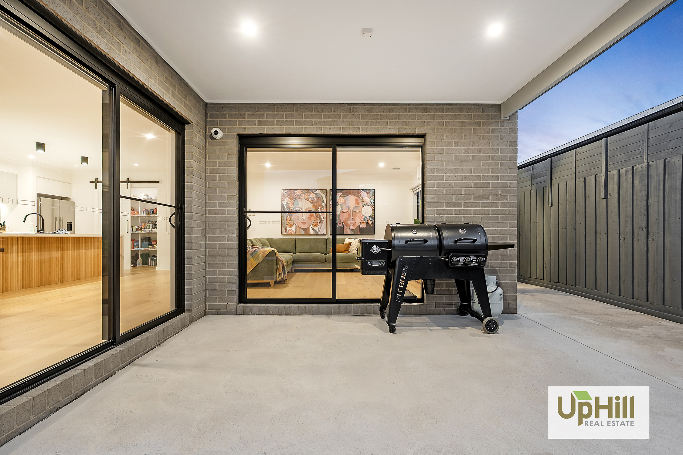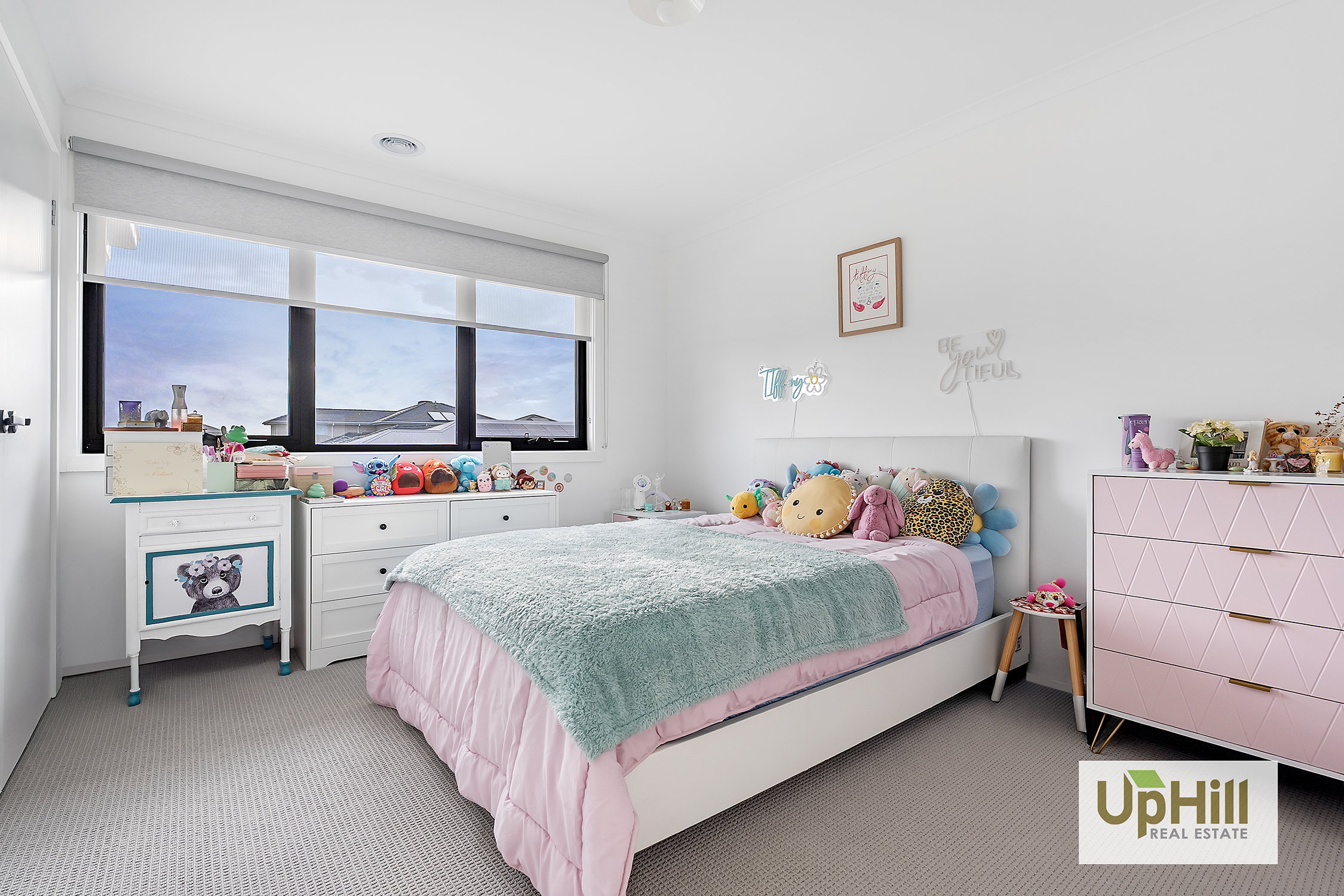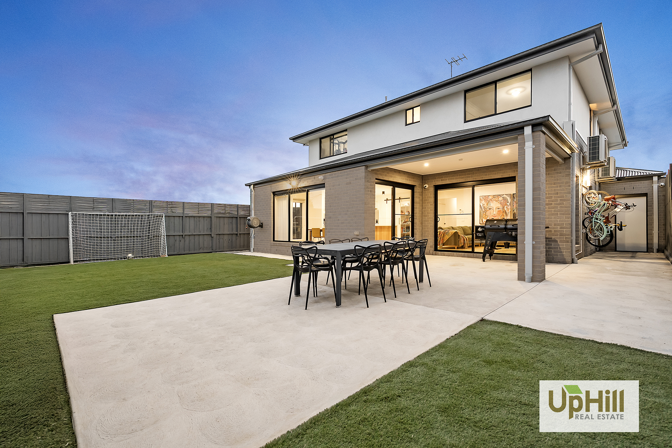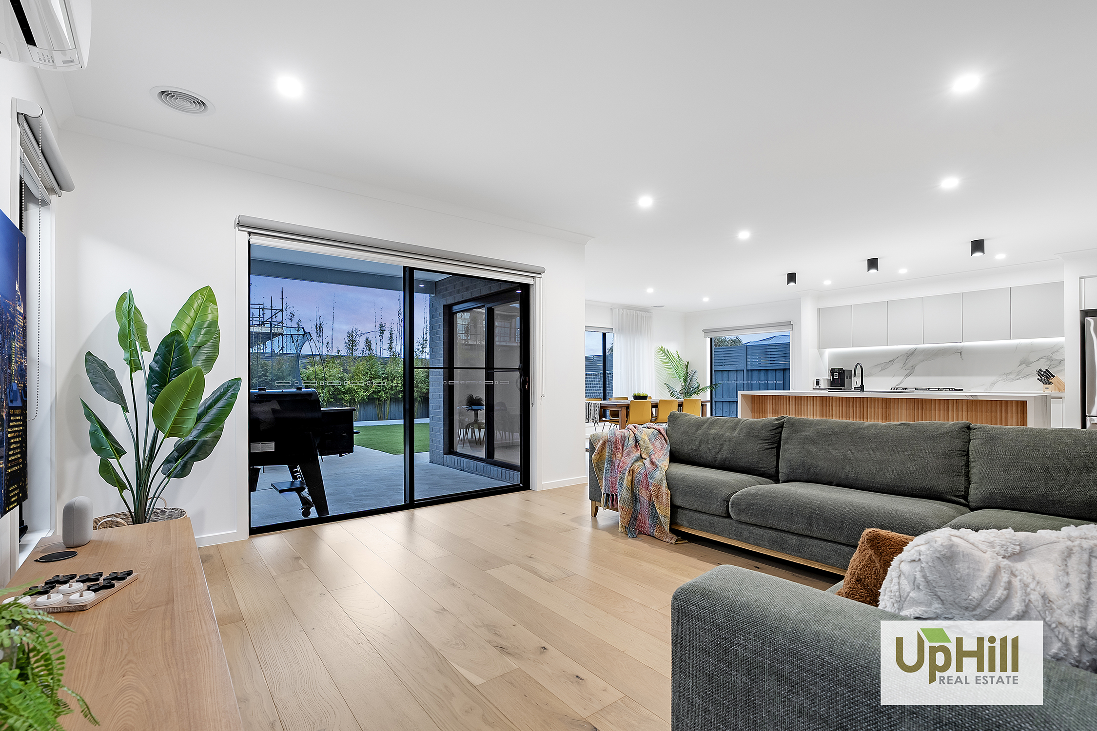 This elegant double-storey home in Officer South features 6 bedrooms, 2 bathrooms, 2 car spaces, and 3 versatile living areas, designed for modern family living. With premium finishes, a designer kitchen with walk-in pantry, and fully landscaped front and rear yards, the home perfectly combines style, comfort, and functionality in a highly sought-after location.