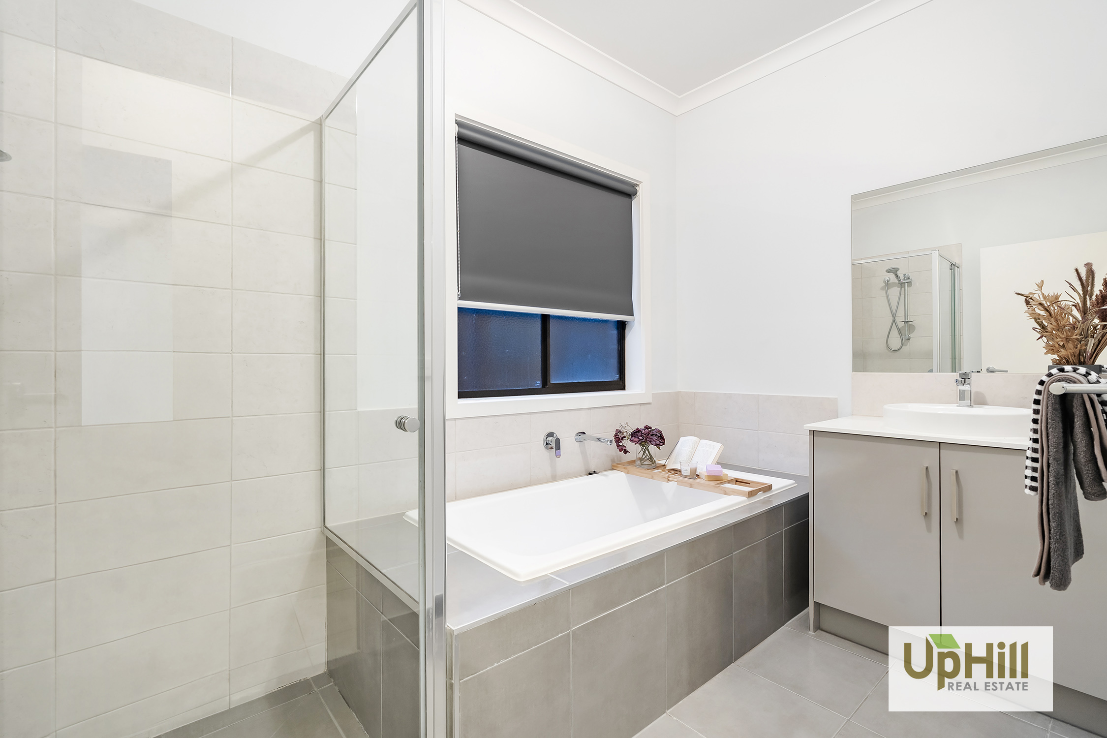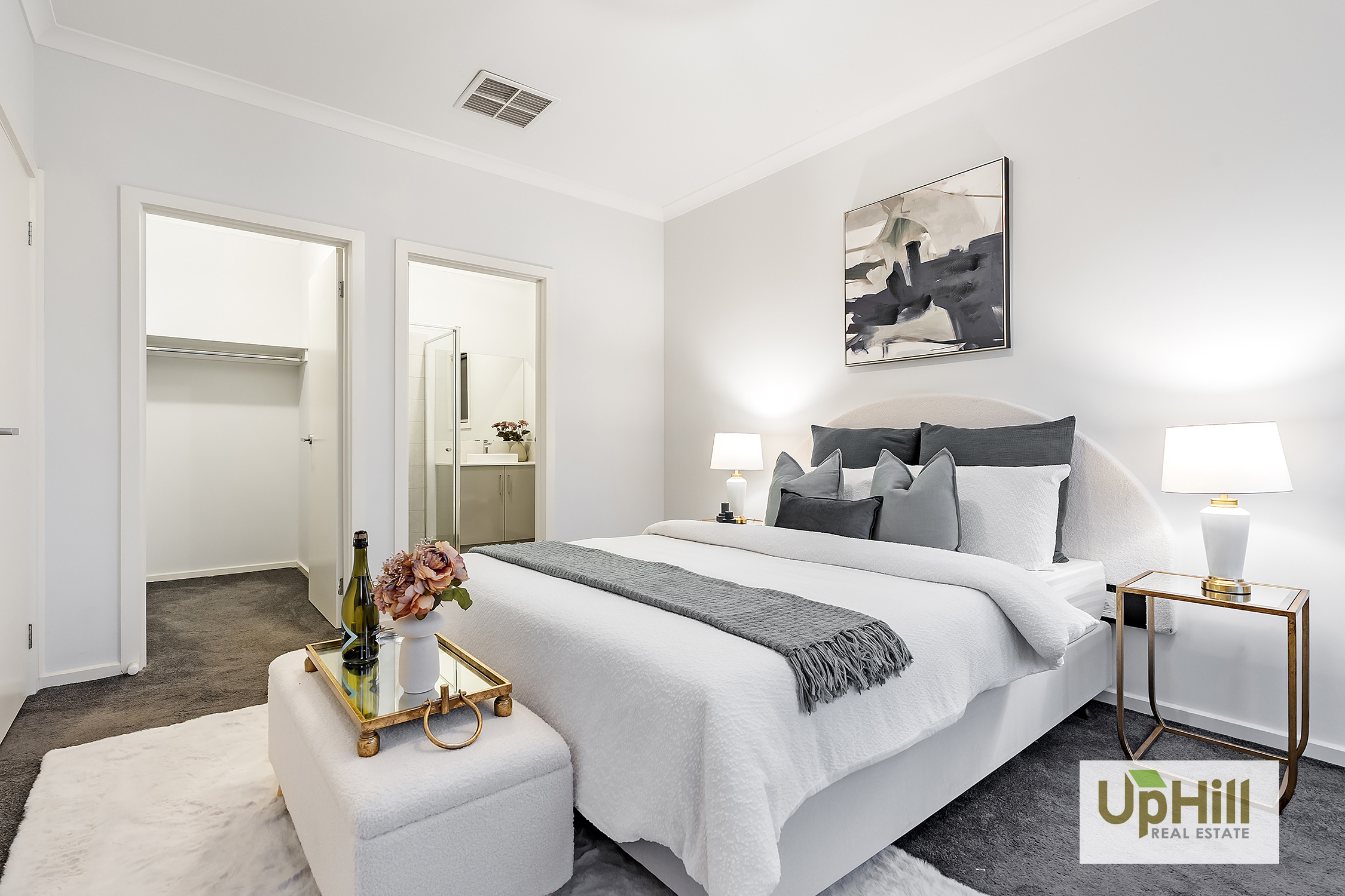 • Master bedroom with ensuite (round vanity, tiled shower base) and walk-in robe.
