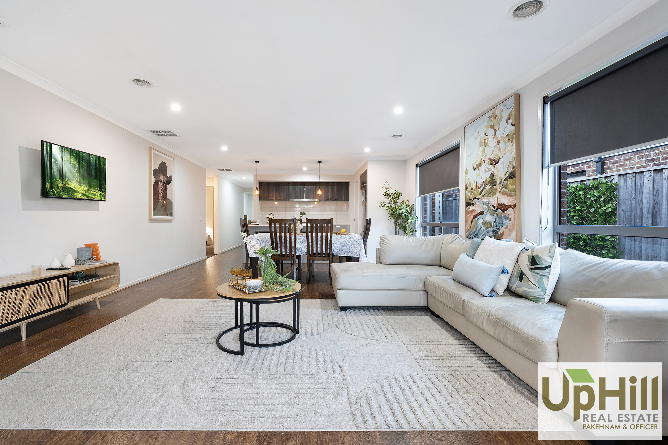 Upon entry, you’re welcomed by a wide entrance adorned with elegant plantation shutters, setting the tone for the home’s warm and inviting atmosphere. The first living area offers a versatile space perfect for relaxing with family or entertaining guests. Designed with both functionality and style in mind.