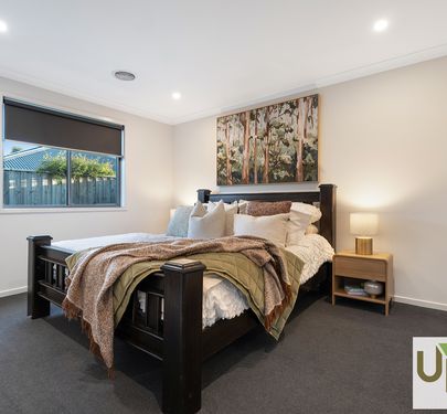 • Private Master Retreat – Thoughtfully positioned for enhanced privacy, the master bedroom features a walk-in robe with upgraded cabinetry for optimal storage, a private ensuite, and a separate toilet, creating a peaceful sanctuary to relax and unwind.
