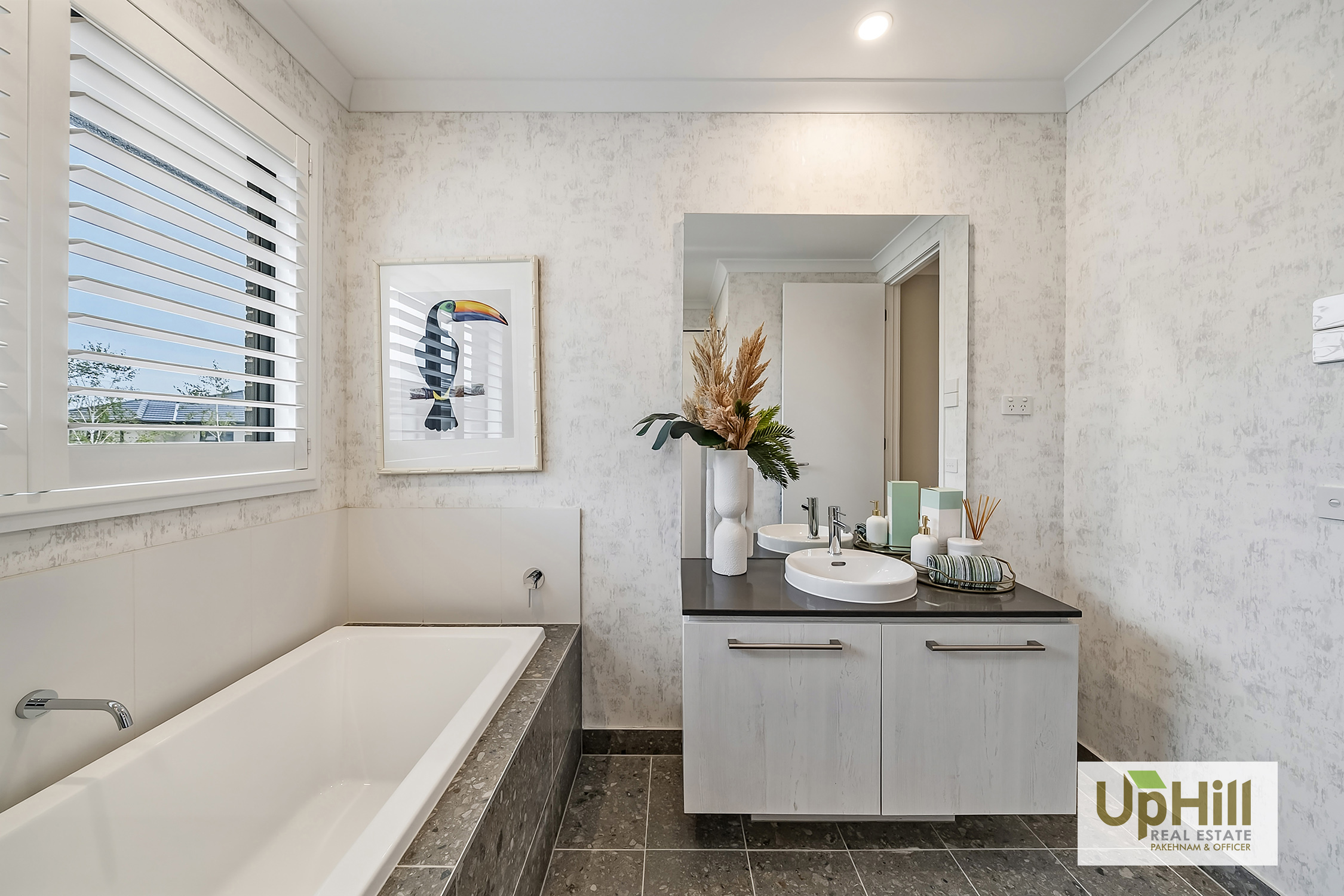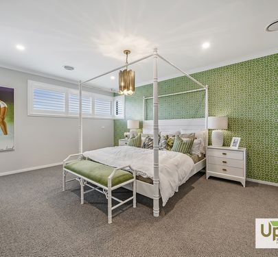 • Luxury Master Suite — A beautifully appointed parents’ retreat featuring an oversized bedroom with chandelier lighting, elegant wallpaper, and plantation‑shuttered windows, complemented by a double‑vanity ensuite with upgraded tapware, a tiled shower base, a relaxing bathtub, and a spacious walk‑in robe